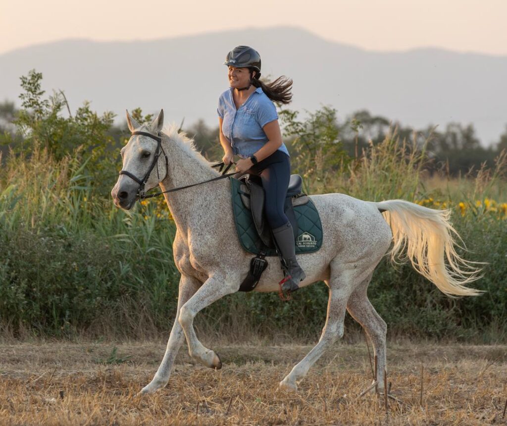 Caballo Pura Raza Árabe (2016), con experiencia previa en carreras de larga distancia, donde llegó a clasificarse en pruebas internacionales 2★ (120 km). Es un caballo con carácter y mucha personalidad, que sabe lo que quiere y lo transmite con presencia. Disfruta especialmente de los pequeños placeres, como comer hierba fresca, y su galope es amplio, suave y muy cómodo, ideal para disfrutar del recorrido.