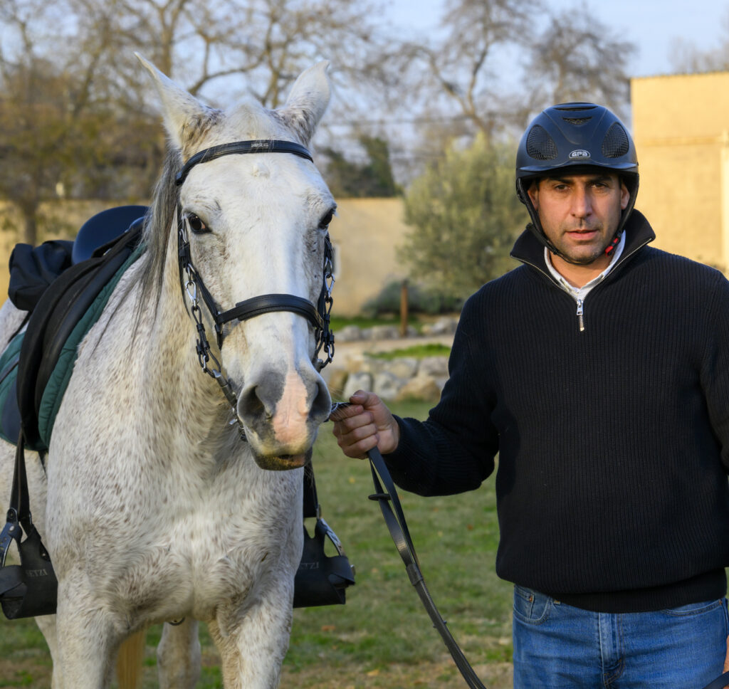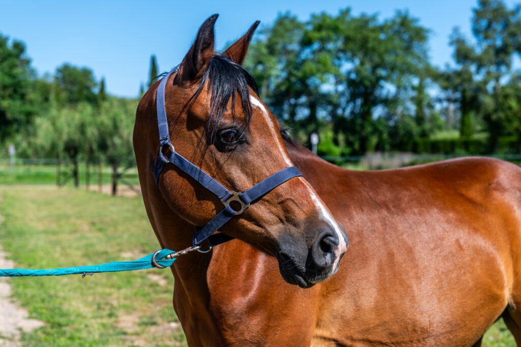 Caballo Pura Raza Árabe (2013), en el establo conocido cariñosamente como “el caballo interminable”. Sencillamente único. Su gran inteligencia lo hace especial —solo le falta hablar—, ya que entiende a la primera lo que se le pide y siempre muestra una disposición ejemplar para trabajar. Ha competido en carreras internacionales de 160 km, nivel 3★, demostrando una resistencia, constancia y corazón fuera de lo común. Con él, las rutas parecen no tener final.